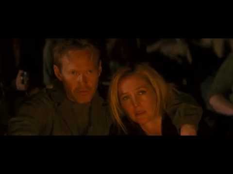 Der junge Held Sean (Callan McAuliffe) mit seiner Mutter Kate (Gillian Anderson) beobachten schreckliches. Auch im Bild: Das Tracking-Implantat mit einer Akku-Laufdauer, die sämtliche andere Trackinggeräte neidisch machen würde … (Foto: Koch Media)